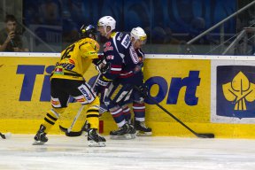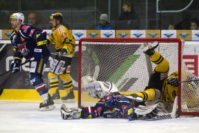 Začátek třetí třetiny vycházel lépe hostům a objevily se slušné šance, které Matúš Kostúr musel likvidovat. Proti jedné takové se musel chomutovský fantom předvést, když se Robin Hanzl ocitl sám před brankou. Kostúr se však stihl přemístit. Poté zvýšili tempo také domácí a Litvínov znovu oslabil o Františka Lukeše. Jenže chomutovští hráči museli spolknout pěkně hořkou pilulku. Při kombinaci na modré čáře puk zachytil MICHAL TRÁVNÍČEK, který se řítil sám na chomutovského bránkáře a skóroval z bekhendového blafáku. Stalo se tak ve 47. minutě a Pirátům rychle utíkal čas. I přes velké úsilí probít se až před Francouze se litvínovským dařila obranná hra a z Chomutova si odvážejí tři body, na které Chomutov čeká už osmý zápas v řadě. Vyrovnaný zápas, se šťastným koncem pro hosty.